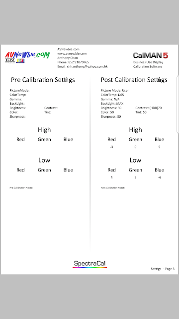今次調校同樣是用上CalMAN 2018 Video Pro測量軟件配合X-Rite i1 Pro 2光譜儀及Klein Instruments K10-A色度計加上AVFoundry VideoFroge + HDFury Integral及Diversified Video Solutions RM UHD/HDR10輸出測試圖完成。