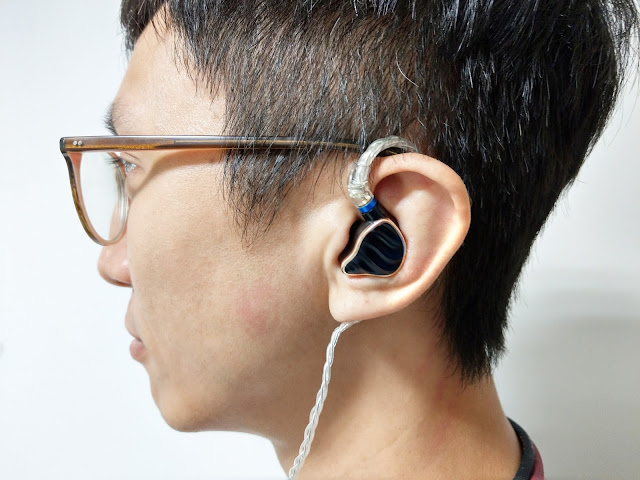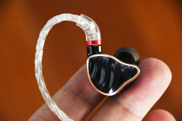 1.在外觀上 : FiiO FH7 外觀上,可以發現和 FiiO 以往耳機很不同,他是金屬(鋁鎂合金)的外殼,摸起來真的很有份量和質感,加上金邊和黑色本體的烤漆,看起來真的就是精品。同時水波紋造型設計讓 FH7 看起來外型有更多變化,算是不錯的設計。另外值得一提的是,他這次外型是符合人耳的輪廓,加上繞耳型線的配戴方法,所以配戴起來很貼耳,也很舒適,這算是加分的一點。