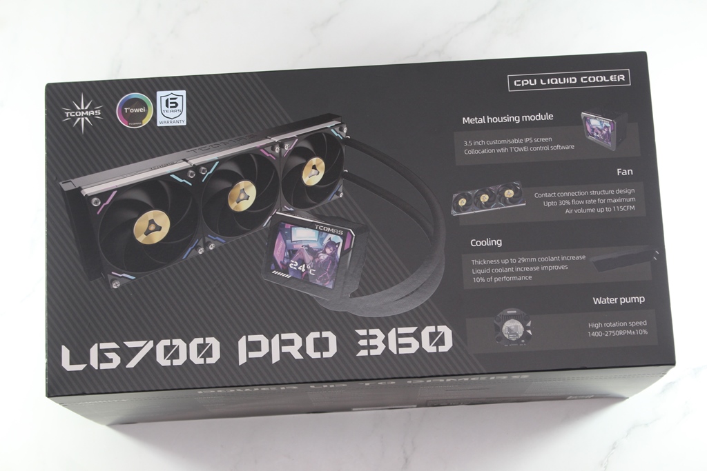 之前介紹過鈦坦TCOMAS的水冷散熱產品留下不錯的好印象,這次要來介紹比較高階的產品『LG700 PRO』一體式水冷散熱器,LG700 PRO提供360mm尺寸,水冷頭搭載3.5吋IPS磁吸式螢幕,透過專用軟體可以設定圖片、gif動畫與影片,也可以設定系統監控資訊,讓玩家可以展現自我風格,螢幕外殼採用斜切紋理與造型通風散熱,螢幕內建軸流風扇,可幫處理器供電與記憶體散熱;風扇搭載自家FC700 PRO風扇,最高轉速達到3200轉,風量高達115.32CFM,風壓7.48 mmAq,最大噪音41dBA,軸心採用FDB軸承,擁有超長60000小時使用壽命,燈效方面風扇正面與側邊都有導光設計,不過老實說這款的燈效算是比較中規中矩;平台支援Intel與AMD主流處理器,比較要注意的是LG700水冷排厚度是29mm,所以機殼的挑選要稍微注意一下,這次搭配旗艦處理器Intel Core Ultra 9 285K測試,馬上就來看鈦坦TCOMAS LG700 PRO  360一體式水冷散熱器帶來的優質表現吧!