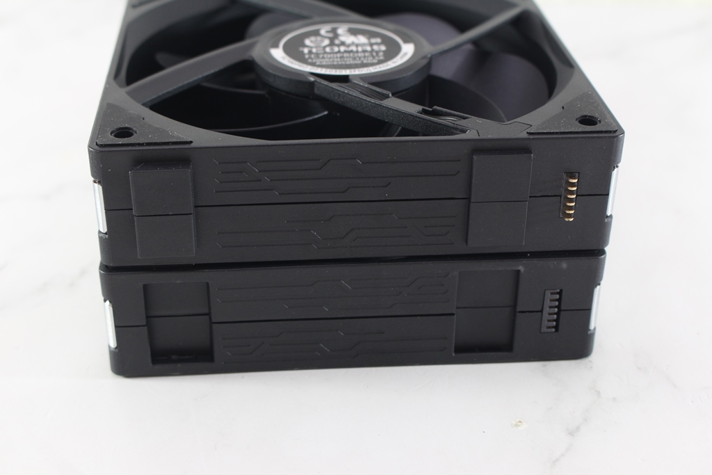 ▼風扇搭載自家FC700 PRO風扇,最高轉速達到3200轉,風量高達115.32CFM,風壓7.48 mmAq,最大噪音41dBA,軸心採用FDB軸承,擁有超長60000小時使用壽命,風扇採用磁吸串接設計,安裝更簡單與方便,側邊有鋁合金飾板與導光設計,整體視覺感非常棒