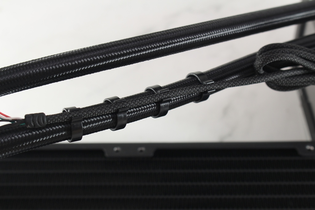 ▼水冷排側面一覽,一側為水冷液體交換管線